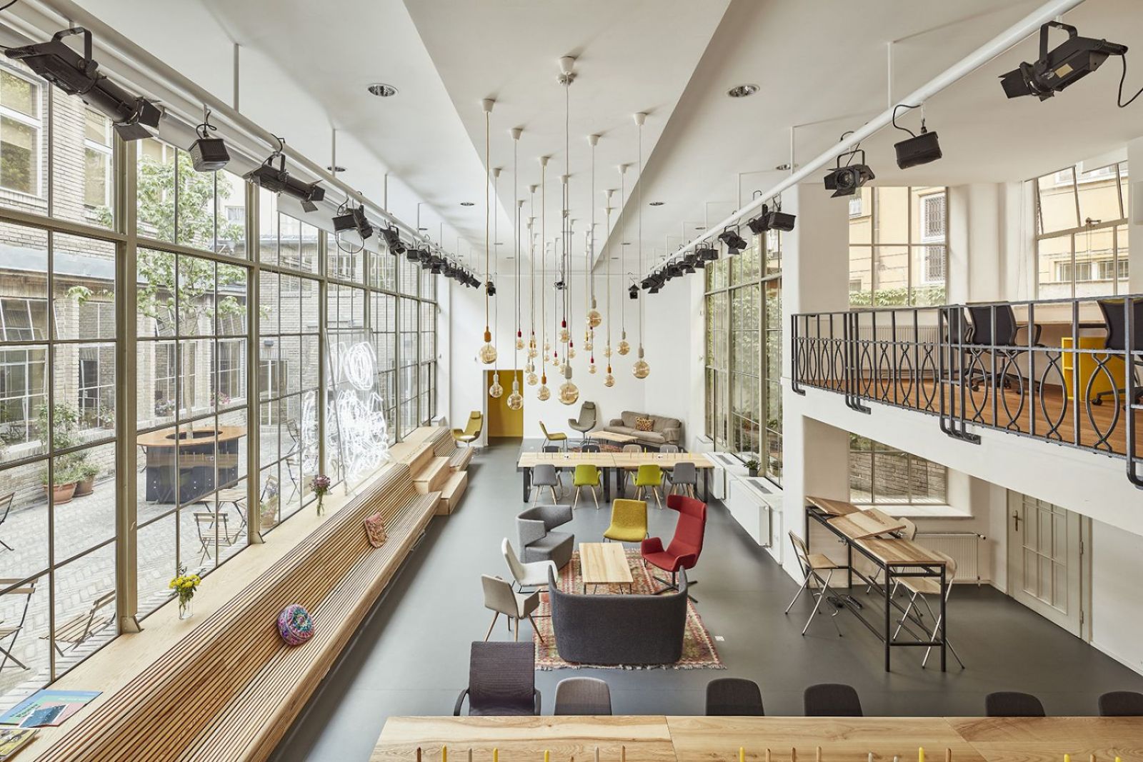 architecturally significant Štenc House and features a large coworking area, private and shared