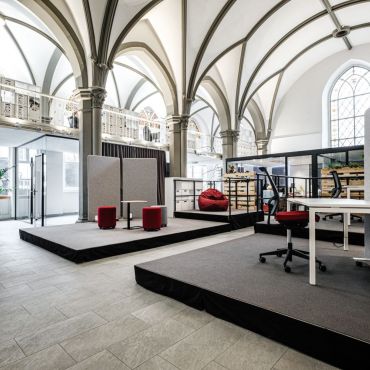 Willkommen im St. Johann Coworkingspace – einem außergewöhnlichen Raum, in dem historisches Ambiente auf moderne Arbeits- und Veranstaltungsräume trifft. Die frühere Stiftungskirche wurde zu einem lebendigen Zentrum für Arbeit, Austausch und Kultur neu gedacht.